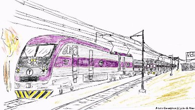 MBTA battery electrics on the Boston Northside lines; Artist's Conception by J.G. Allen.